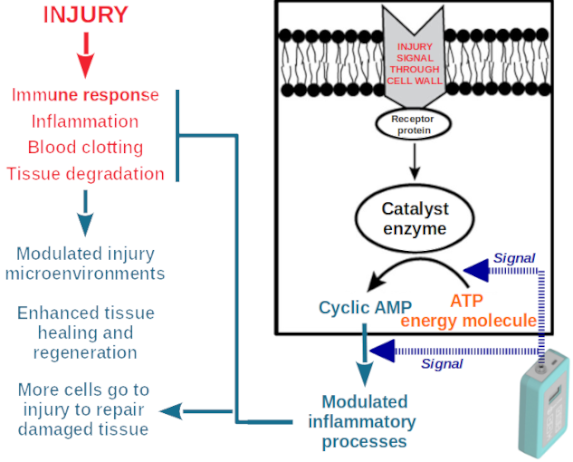 - Enhanced and faster injury healing. Targeted bio-signaling stimulation of intracellular 'second messenger' molecule pathways: cyclic-A-M-P and cyclic-G-M-P that relay and amplify the messages for metabolic activity and healing.
